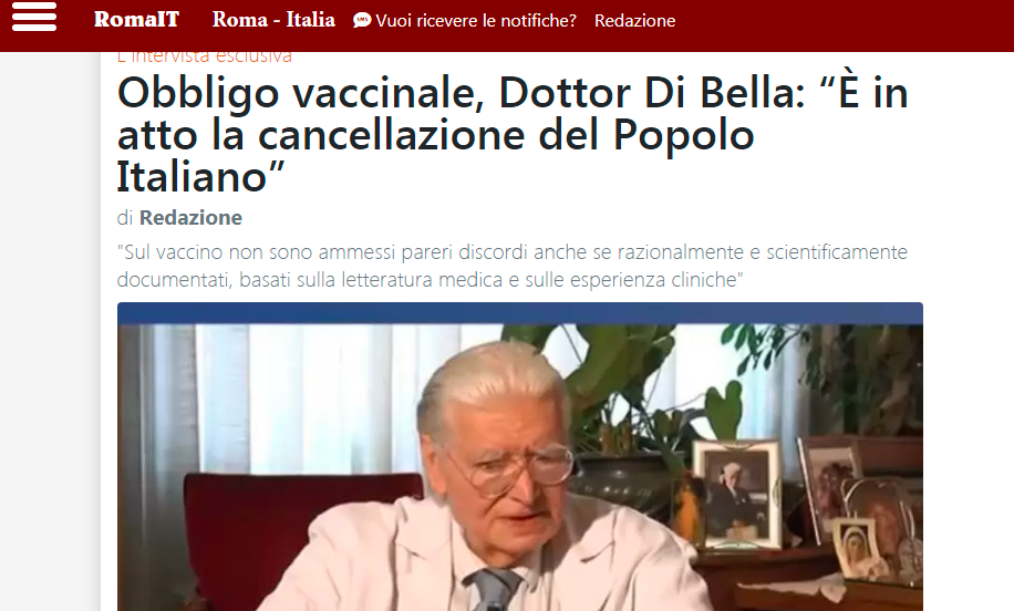 Homepage » NewsObbligo vaccinale, Dottor Di Bella: “È in atto la cancellazione del Popolo Italiano” (Roma.it)Pubblicato il 08/09/2021 Photogallery
